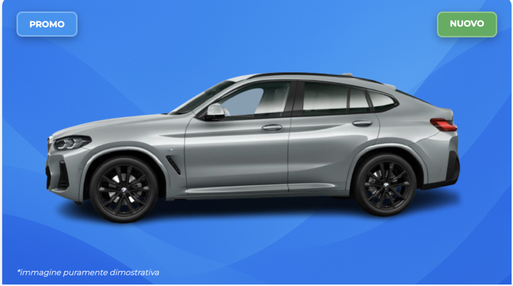 Perché conviene noleggiare la BMW X4 M Sport invece di acquistarla: canone fisso, zero preoccupazioni per manutenzione, assicurazione e bollo, possibilità di cambiare modello ogni 24-48 mesi, massima flessibilità con durata, km e anticipo personalizzabili. Nessun rischio di svalutazione, gestione semplificata e pronta consegna immediata su auto in stock.